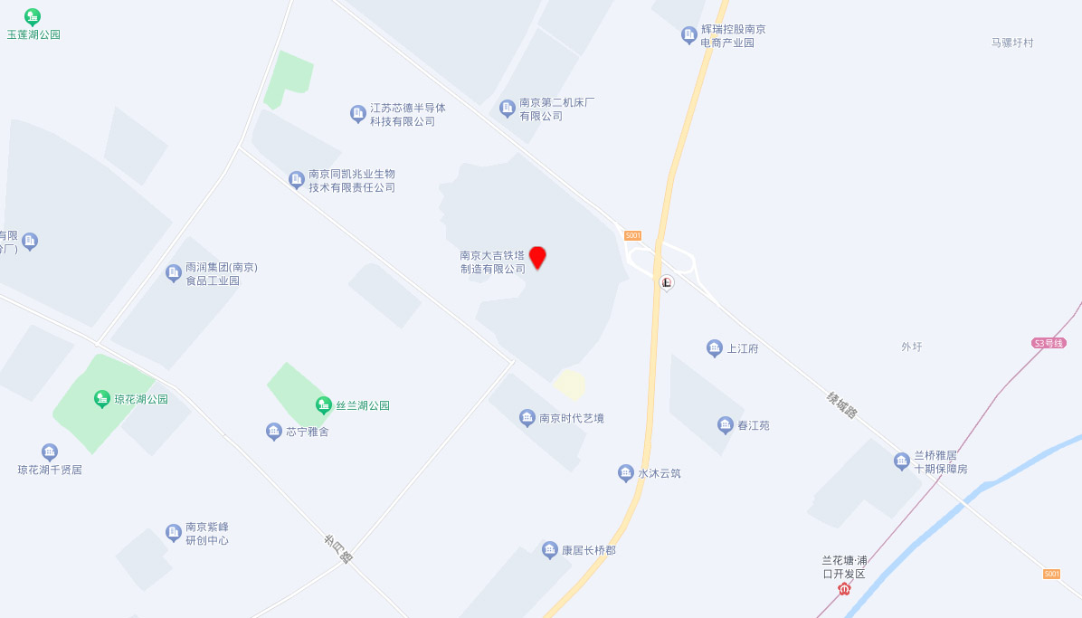 南京大吉铁塔制造有限公司成立于1997年,是生产各种电压等级的输电线路铁塔、通信塔、钢管塔、变电站构支架等产品的专业企业。公司位于南京市浦口区桥林工业集中区,占地面积约67万平方米。具有年生产角钢塔40万吨,钢管塔15万吨,热镀锌60万吨的能力,是目前国内极具影响力、具有国际先进水平的铁塔制造企业之一。